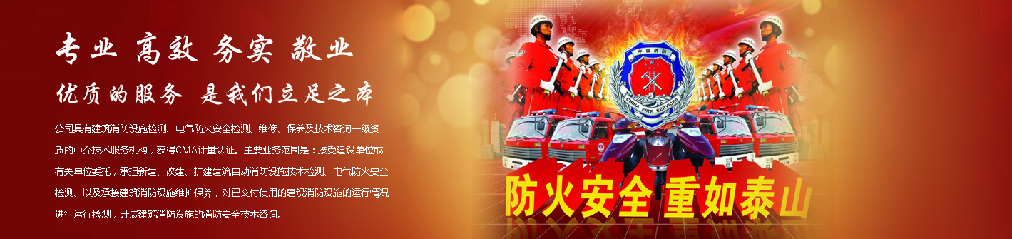 公司具有建筑消防設(shè)施檢測、電氣防火安全檢測、維修、保養(yǎng)及技術(shù)咨詢一級(jí)資質(zhì)的中介技術(shù)服務(wù)機(jī)構(gòu),獲得CMA計(jì)量認(rèn)證。主要業(yè)務(wù)范圍是:接受建設(shè)單位或有關(guān)單位委托,承擔(dān)新建、改建、擴(kuò)建建筑自動(dòng)消防設(shè)施技術(shù)檢測、電氣防火安全檢測、以及承接建筑消防設(shè)施維護(hù)保養(yǎng),對(duì)已交付使用的建設(shè)消防設(shè)施的運(yùn)行情況進(jìn)行運(yùn)行檢測,開展建筑消防設(shè)施的消防安全技術(shù)咨詢。公司設(shè)辦公室、總工辦、財(cái)務(wù)部、檢測部、維保部等職能機(jī)構(gòu),擁有一